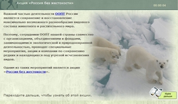 Модуль предназначен для получения в активной форме знаний об эколого-просветительской деятельности ООПТ России и об экологической акции «Россия без жестокости» по сохранению находящихся под угрозой исчезновения гренландских тюленей. Самостоятельная работа с интерактивной картой позволяет изучить туристический маршрут по Архангельской области «В гости к новорождённым тюленям».