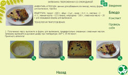 Модуль предназначен для изучения технологии приготовления блюд из творога. Представлен рецепт приготовления запеканки творожной со смородиной. Подробное описание рецепта сопровождается яркими иллюстрациями и аудиоматериалом. В модуль включены конспект с рецептом блюда и задание для самопроверки. Содержит специальные настройки, облегчающие работу учащимся с пониженной остротой зрения и нарушенным восприятием цветов.