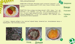 В модуле представлен рецепт приготовления фаршированного перца. Подробное описание рецепта сопровождается яркими иллюстрациями и аудиоматериалом. Содержит специальные настройки, облегчающие работу учащимся с пониженной остротой зрения и нарушенным восприятием цветов. В правом нижнем углу экрана расположен значок для перехода в сцену с настройками, где можно подобрать размер шрифта и цвет фона. Значок для увеличения текстовых и графических материалов и озвучивания текстов находится рядом с объектом или появляется при расположении на нём курсора.