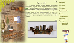Модуль предназначен для изучения архитектуры и интерьера русской избы и терема, а также стиля а ля рус. Приведены подробные рекомендации по воссозданию русского кантри современными средствами. Материал сопровождается яркими иллюстрациями и слайдшоу. Для закрепления полученных знаний рекомендуется выполнить задание для самопроверки. Разобраться с работой модуля поможет анимированный помощник.