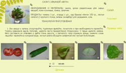 В модуле представлен рецепт приготовления салата из сырых овощей с брынзой «Фета». Подробное пошаговое описание рецепта сопровождается яркими иллюстрациями и аудиоматериалом. С чего начать работу с модулем подскажет помощник – маленький повар.