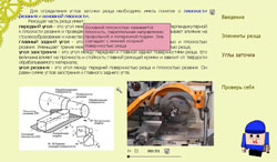 Модуль предназначен для изучения элементов токарных резцов, а также различных углов заточки. Материал сопровождается фото- и видеоматериалом; для закрепления полученных знаний содержит задание для самопроверки. Разобраться с работой модуля поможет анимированный помощник – маленький мастер.