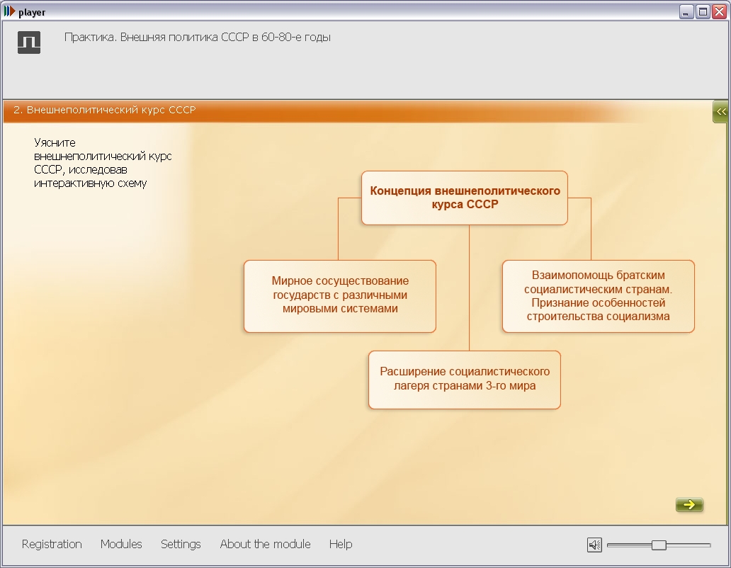 Модуль позволяет закрепить осмысление темы "Внешняя политика СССР в 60-80-е годы".